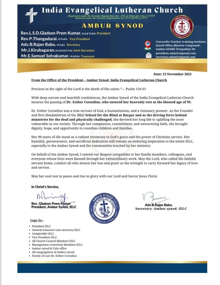 IELC Ambur Synod Holy Installation Service at Immanuel Lutheran Church, Ambur on November 08, 2025