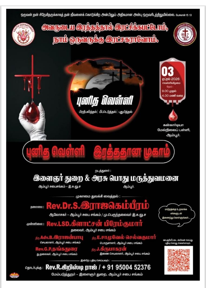 CONGRADULATIONS TO THE YOUTH DEPARTMENT OF IELC AMBUR SYNOD ON ORGANIZING THE “GOOD FRIDAY BLOOD DONATION CAMP” ON 03/04/2026.