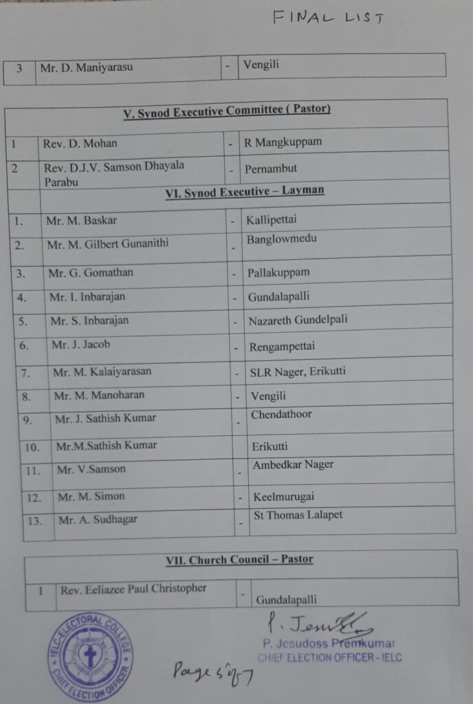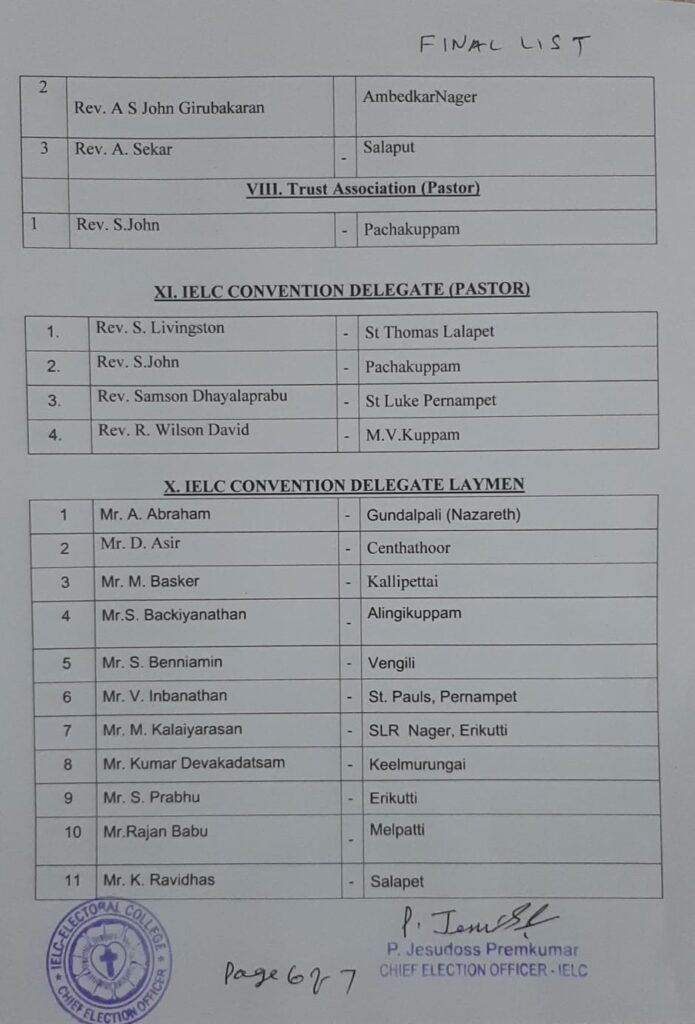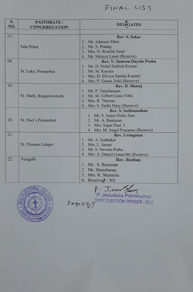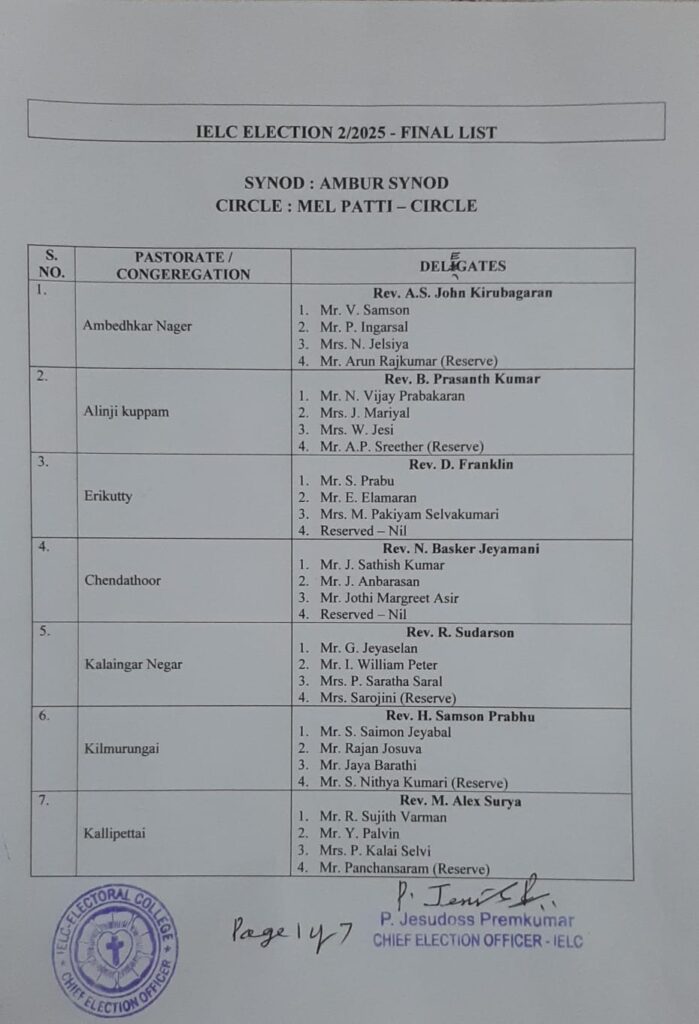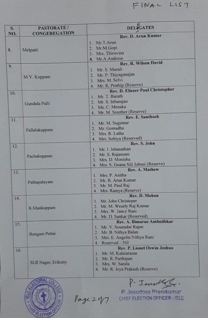 Final List of candidates / delegates in Karnataka Circle – Ambur Synod