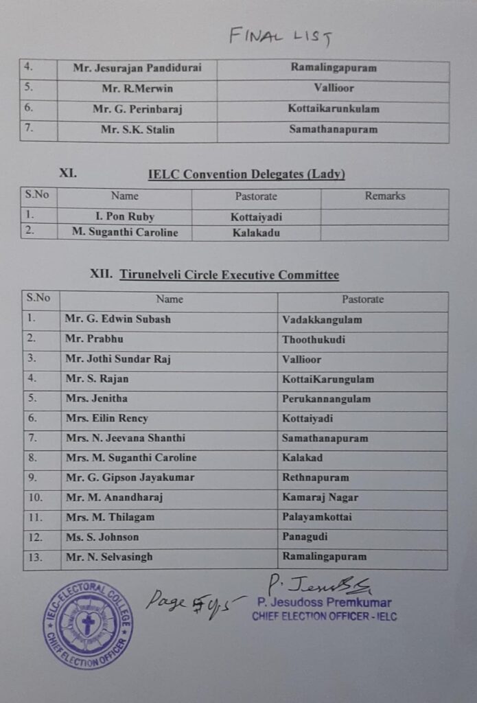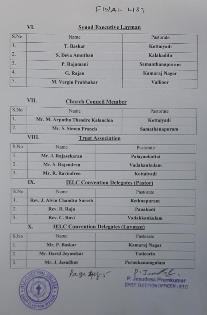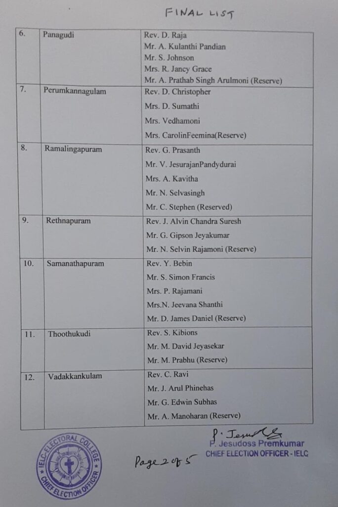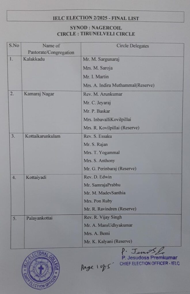 Final List of candidates / delegates in Tirunelveli Circle – Nagercoil Synod