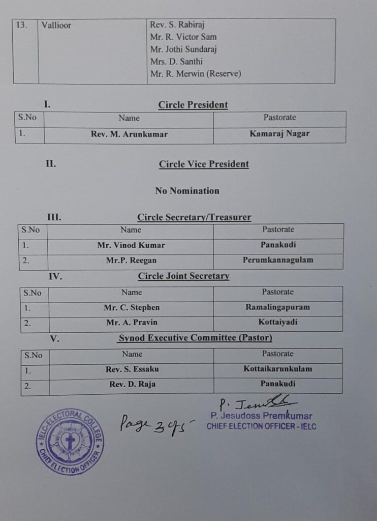 Final List of candidates / delegates in Thovalai Circle – Nagercoil Synod