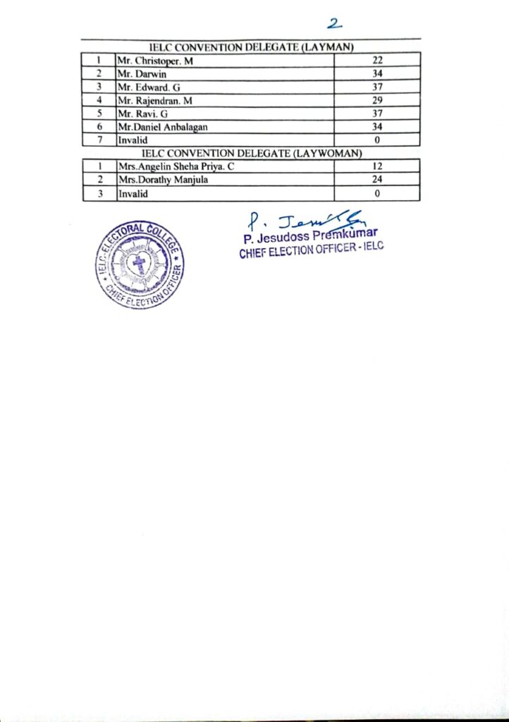 IELC ELECTION – 2/2025, AMBUR SYNOD – MADRAS CIRCLE ELECTION RESULTS
