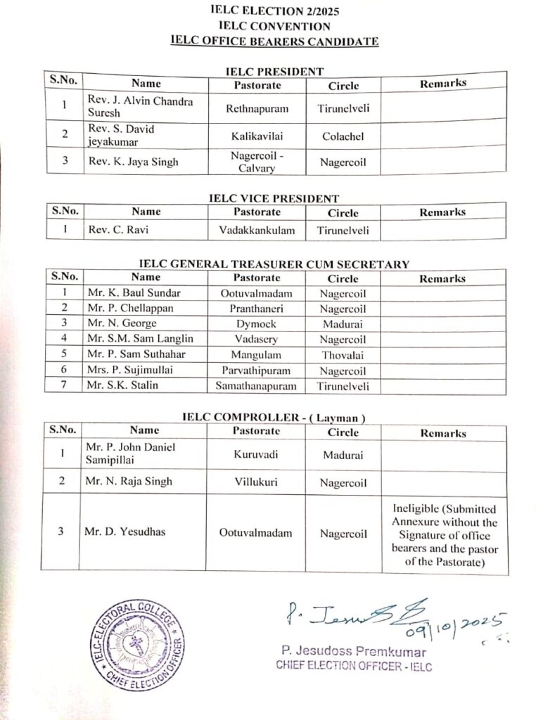 • Final List of candidates / delegates in Madras Circle – Ambur Synod - 12/08/2025