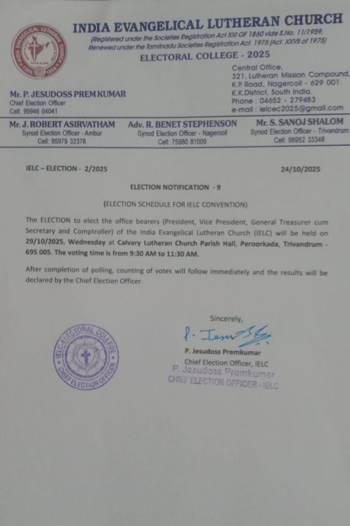 IELC ELECTION 2/2025 AMBUR SYNOD CONVENTION RESULTS FOR SYNOD OFFICE BEARERS AND IELC OFFICE BEARERS PUBLISHED.