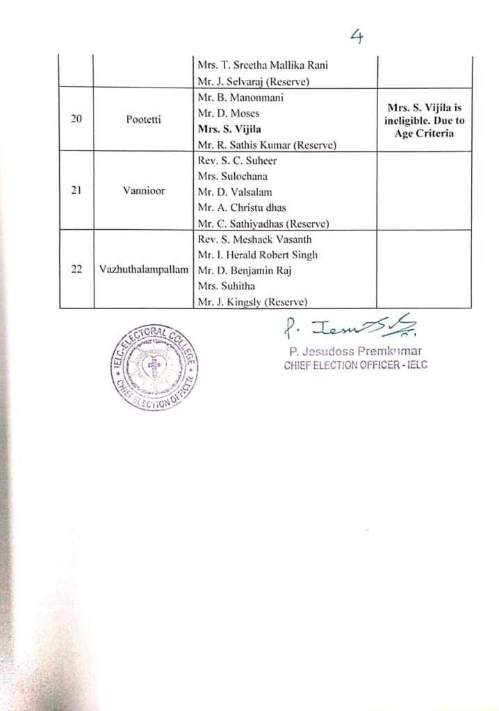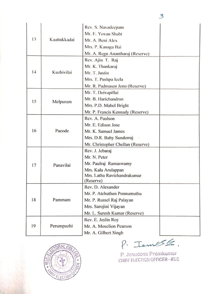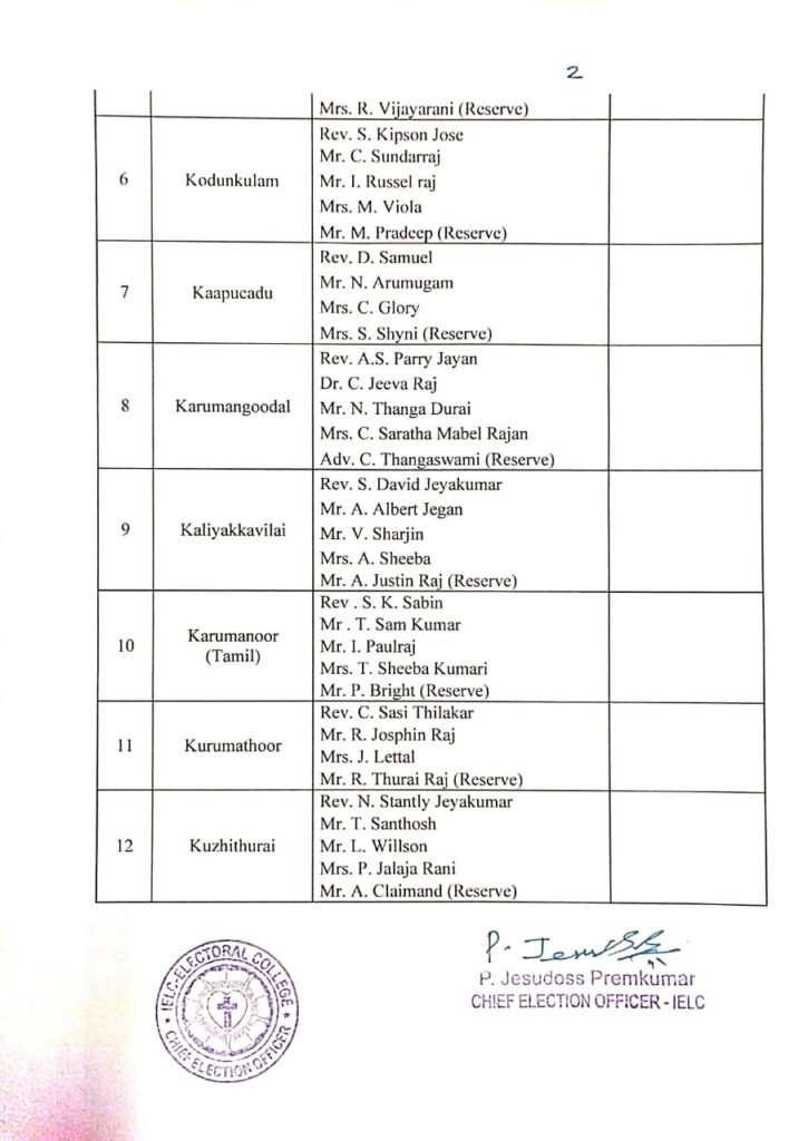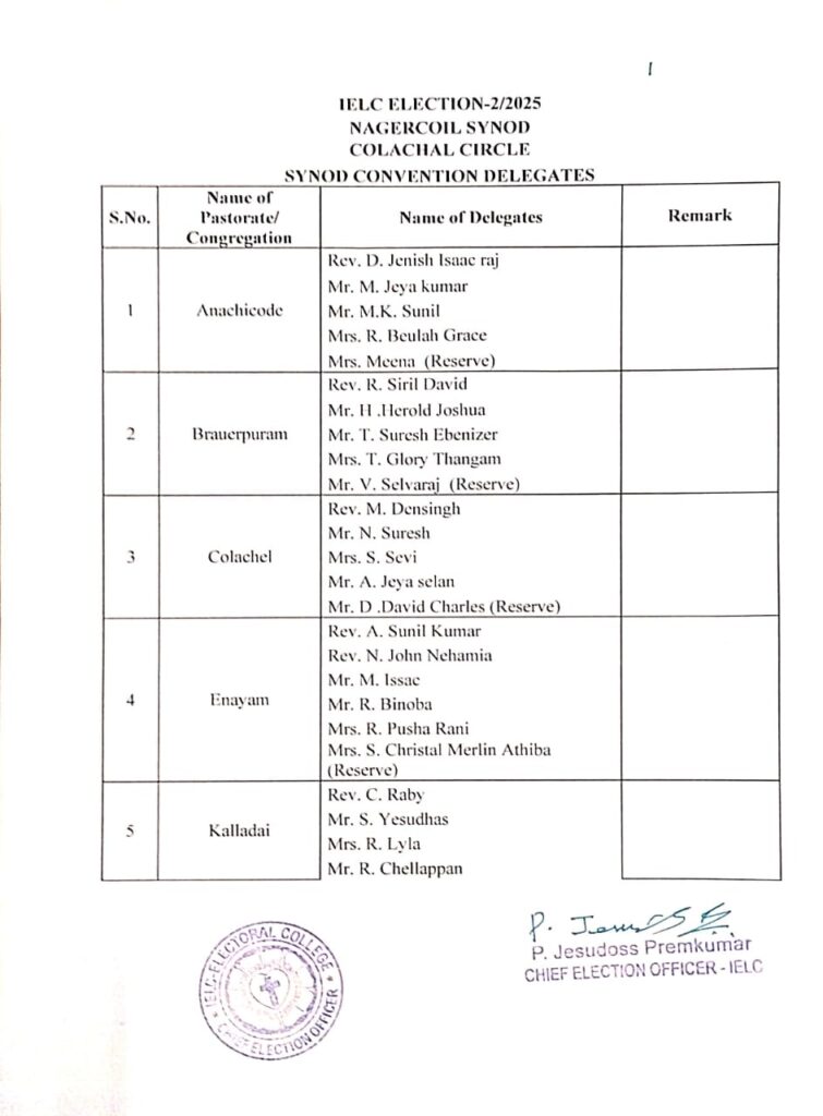 IELC ELECTION – 2/2025, NAGERCOIL SYNOD – COLACHEL CIRCLE VOTERS LIST