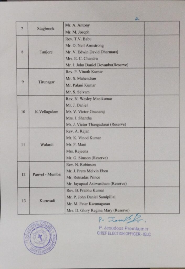 IELC ELECTION – 2/2025, NAGERCOIL SYNOD – COLACHEL CIRCLE – FINAL VOTERS LIST