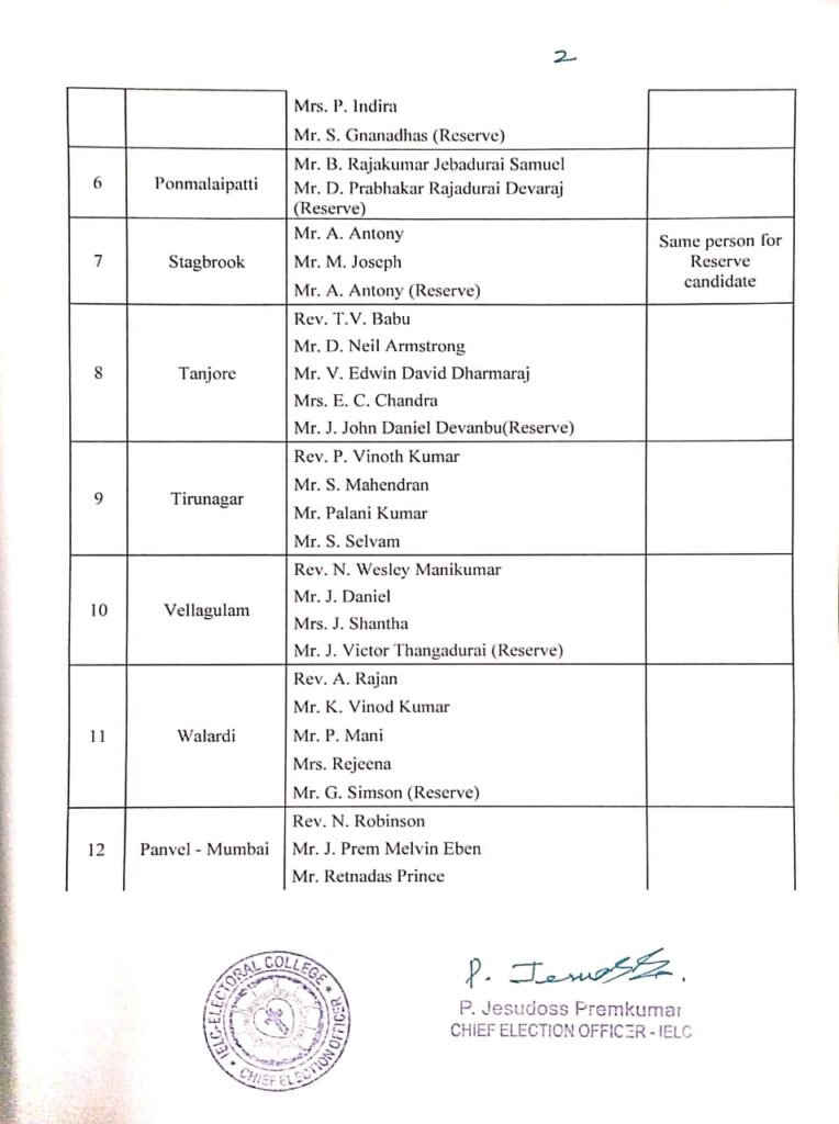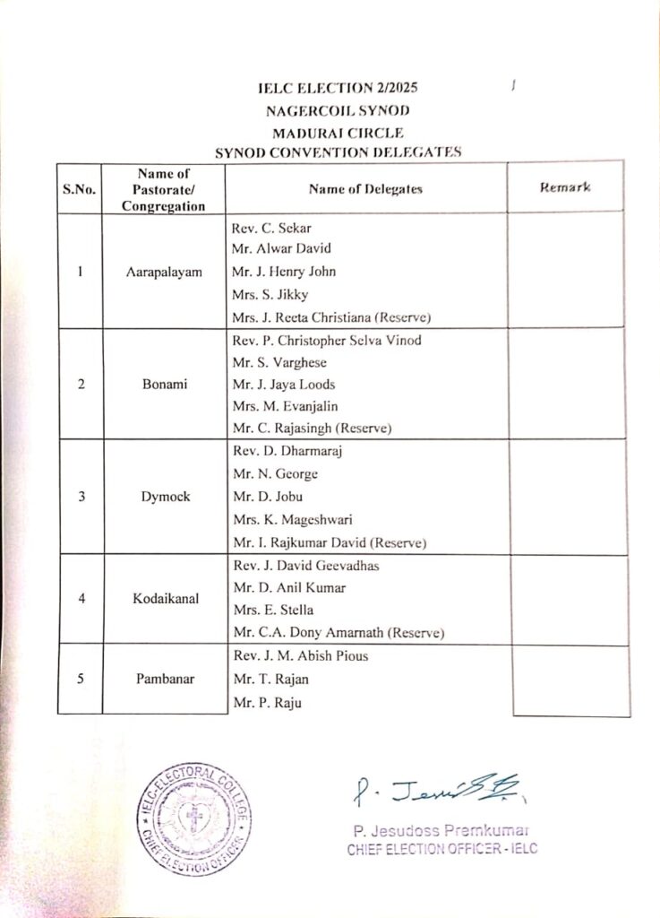 IELC ELECTION – 2/2025, NAGERCOIL SYNOD – MADURAI CIRCLE VOTERS LIST