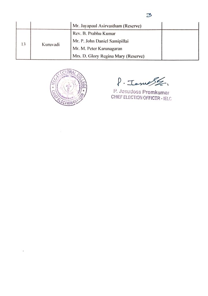IELC ELECTION – 2/2025, NAGERCOIL SYNOD – NAGERCOIL CIRCLE VOTERS LIST