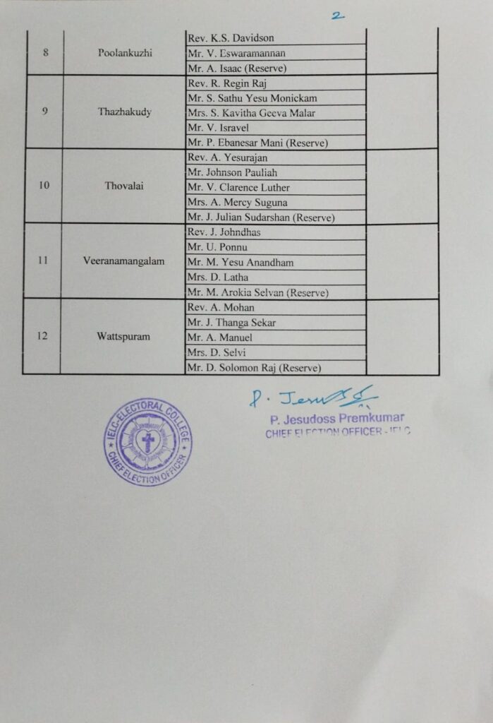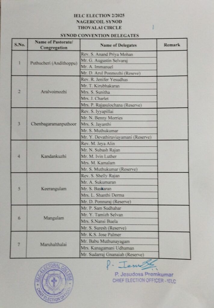 IELC ELECTION – 2/2025, NAGERCOIL SYNOD – THOVALAI CIRCLE – FINAL VOTERS LIST