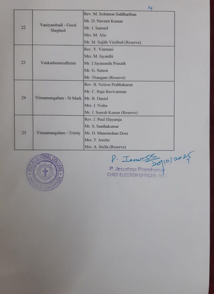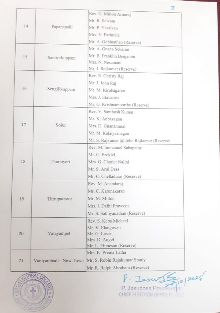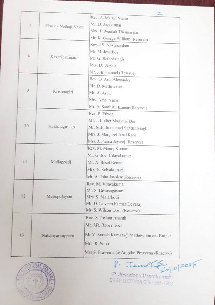 IELC ELECTION 2/2025 SYNOD CONVENTION – AMBUR SYNOD – FINAL SYNOD OFFICE BEARERS AND IELC OFFICE BEARERS CANDIDATES PUBLISHED