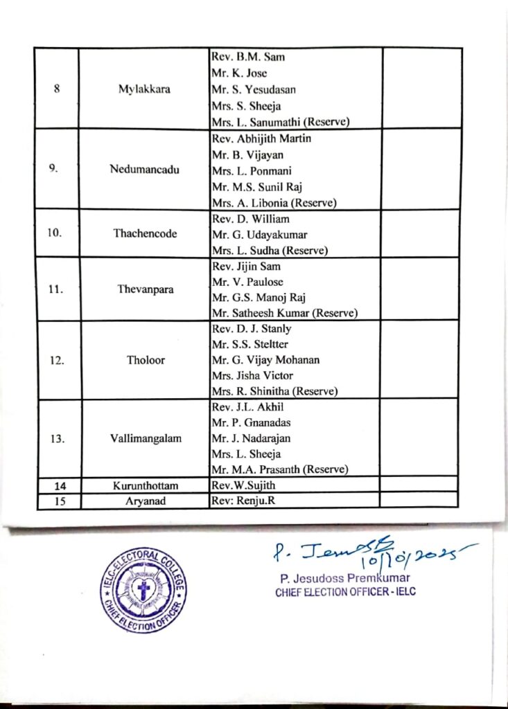 IELC ELECTION – 2/2025, TRIVANDRUM SYNOD – NILAMEL CIRCLE VOTERS LIST