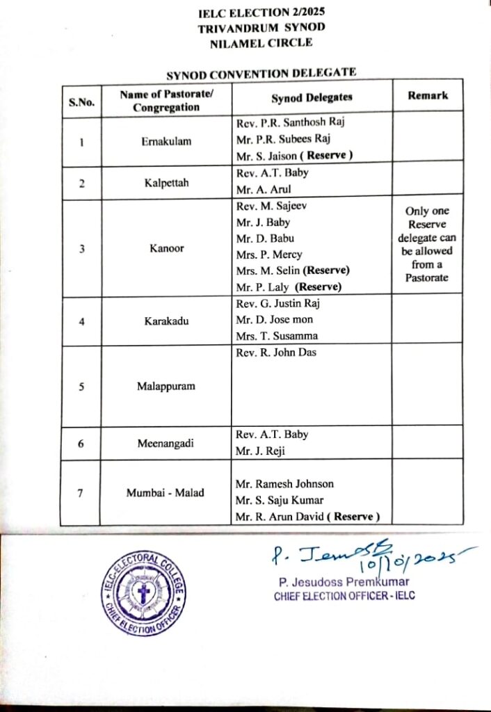 IELC ELECTION – 2/2025, TRIVANDRUM SYNOD – LUTHERGIRI CIRCLE VOTERS LIST