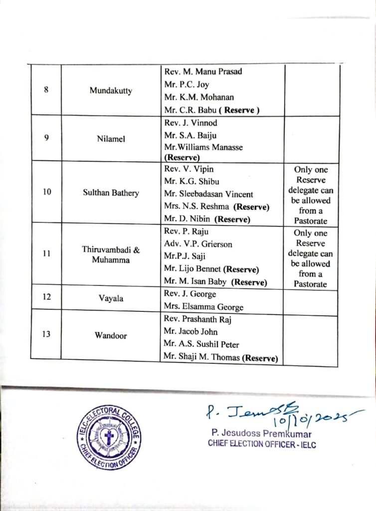 IELC ELECTION – 2/2025, TRIVANDRUM SYNOD – PONVILA CIRCLE VOTERS LIST