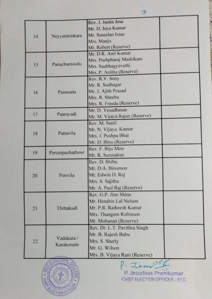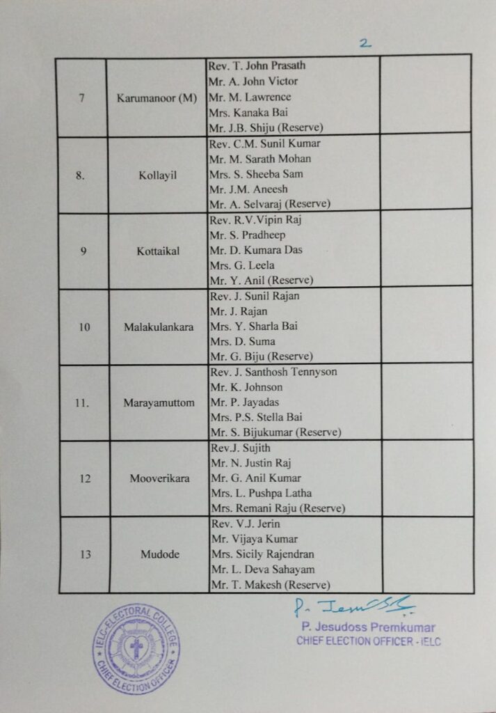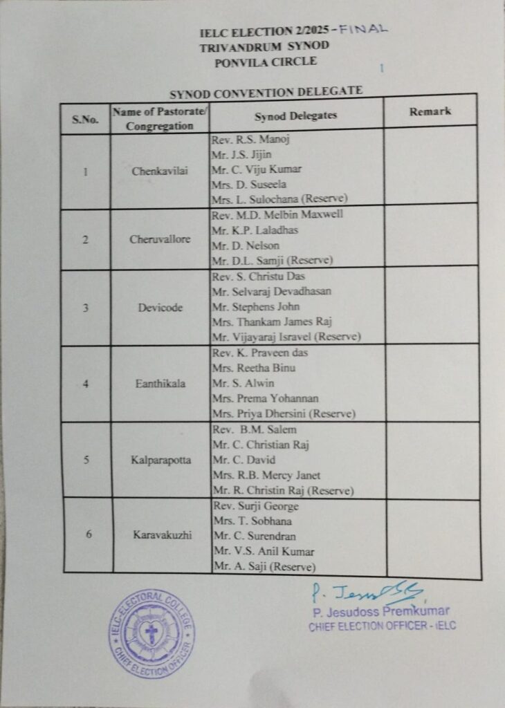IELC ELECTION – 2/2025, TRIVANDRUM SYNOD – PONVILA CIRCLE – FINAL VOTERS LIST