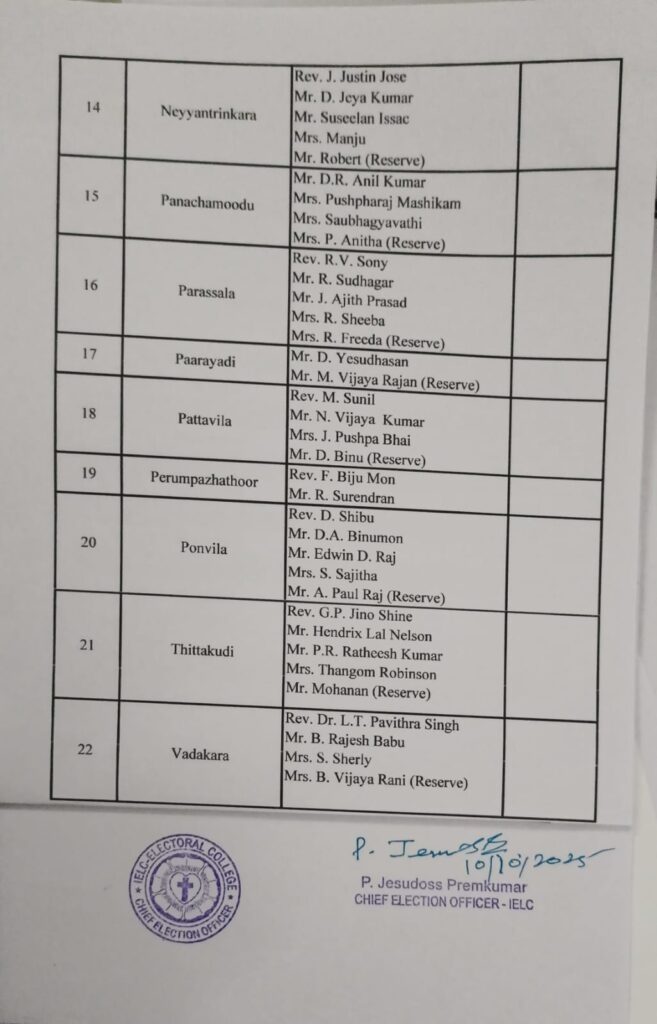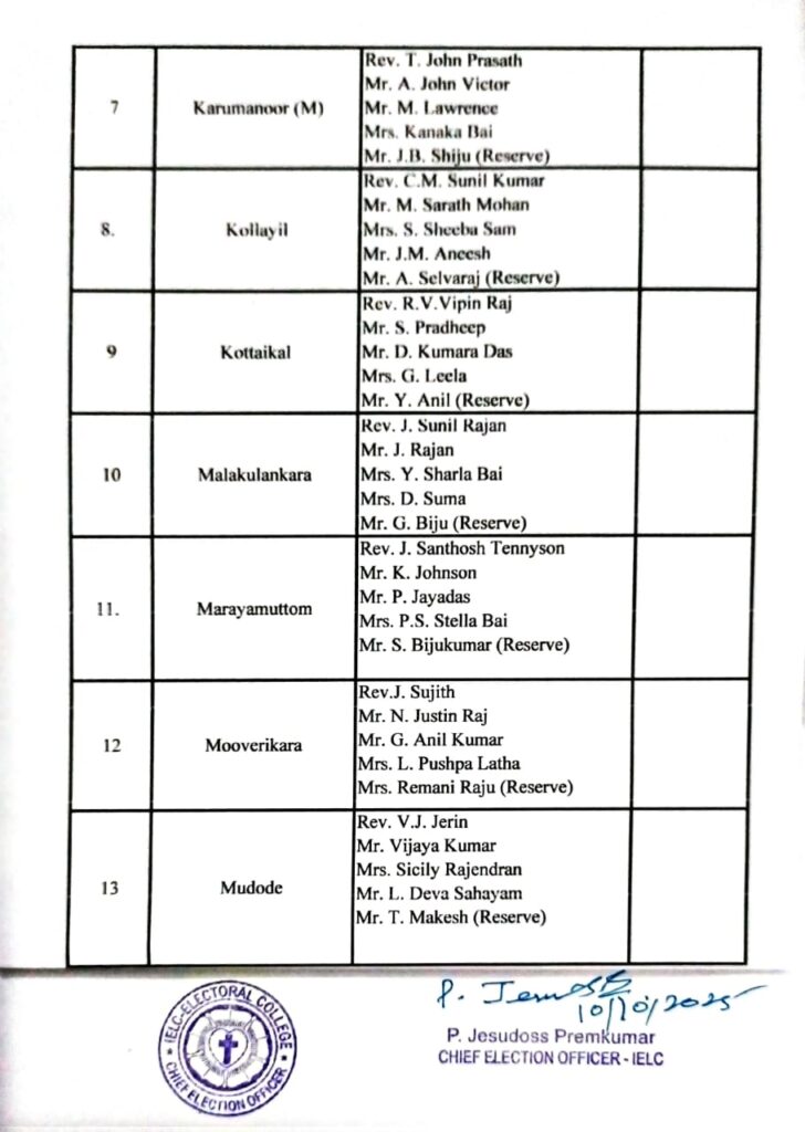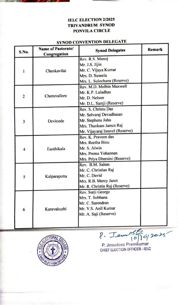 IELC ELECTION – 2/2025, TRIVANDRUM SYNOD – PONVILA CIRCLE VOTERS LIST