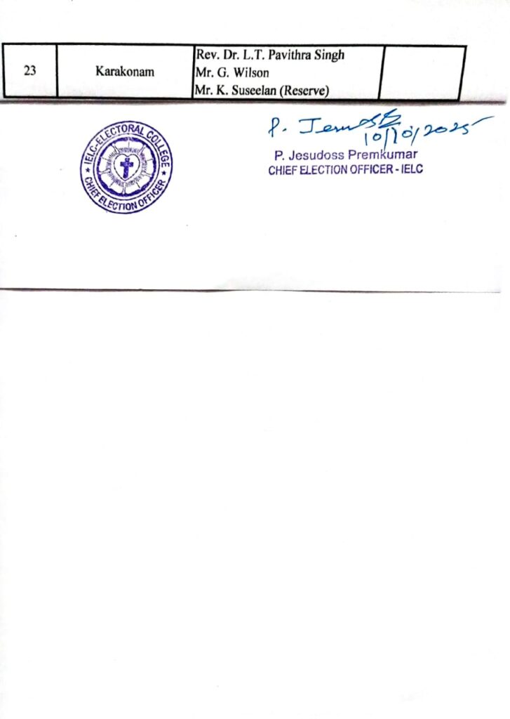 IELC ELECTION – 2/2025, TRIVANDRUM SYNOD – TRIVANDRUM CIRCLE VOTERS LIST