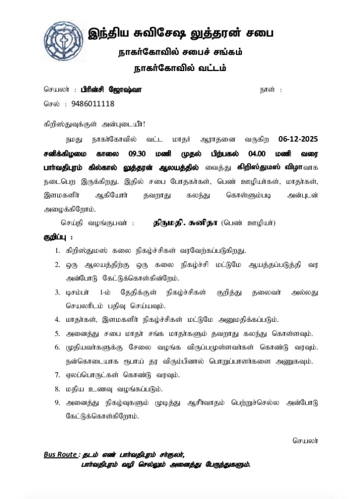 IELC-NAGERCOIL SYNOD – NAGERCOIL CIRCLE WOMEN’S CHRISTMAS CELEBRATION