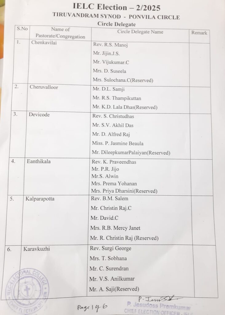 List of candidates / delegates in Nilamel Circle – Trivandrum Synod