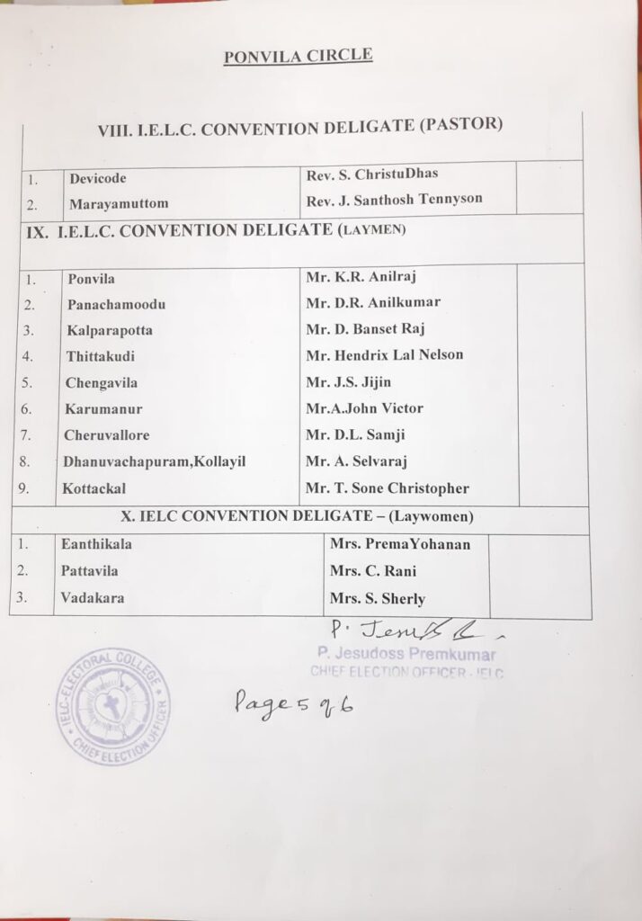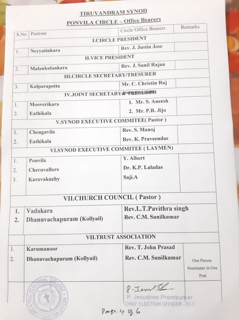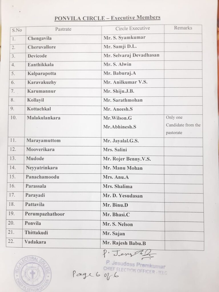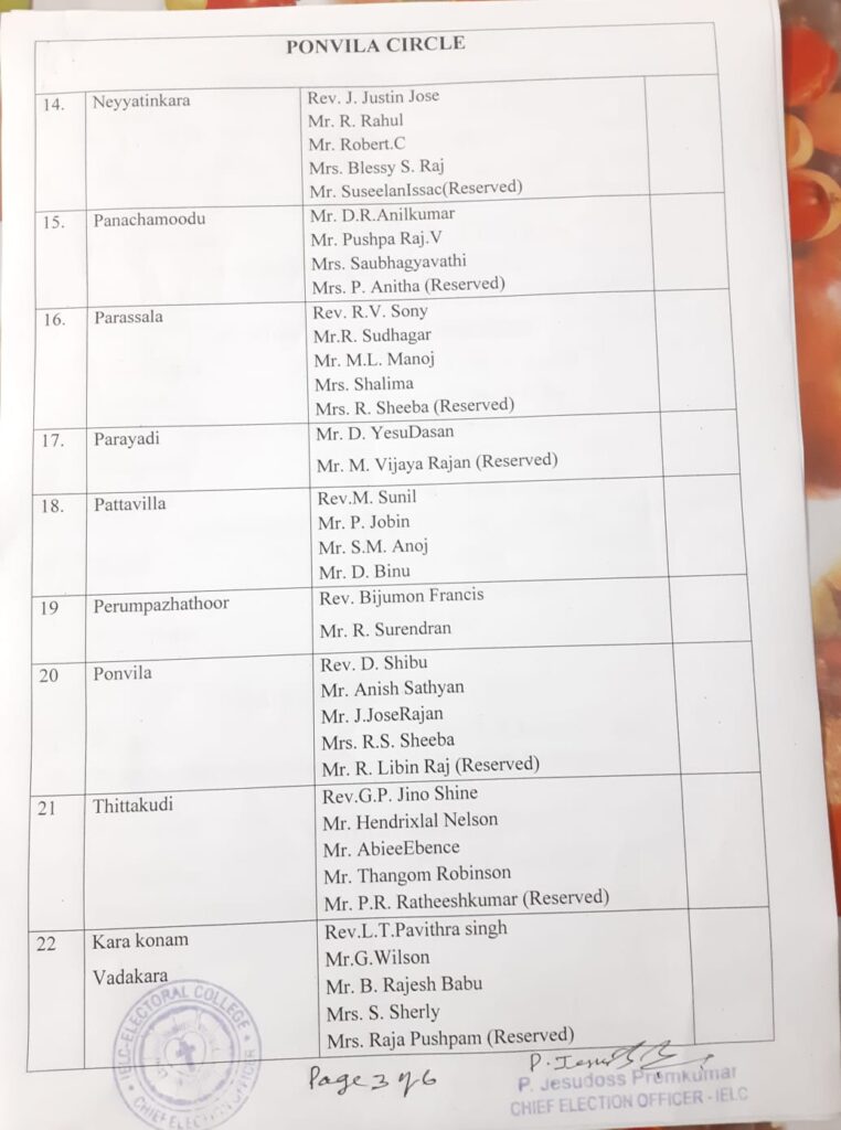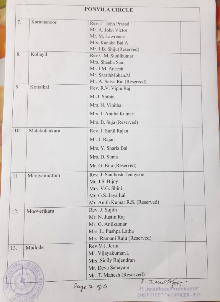 List of candidates / delegates in Ponvila Circle – Trivandrum Synod