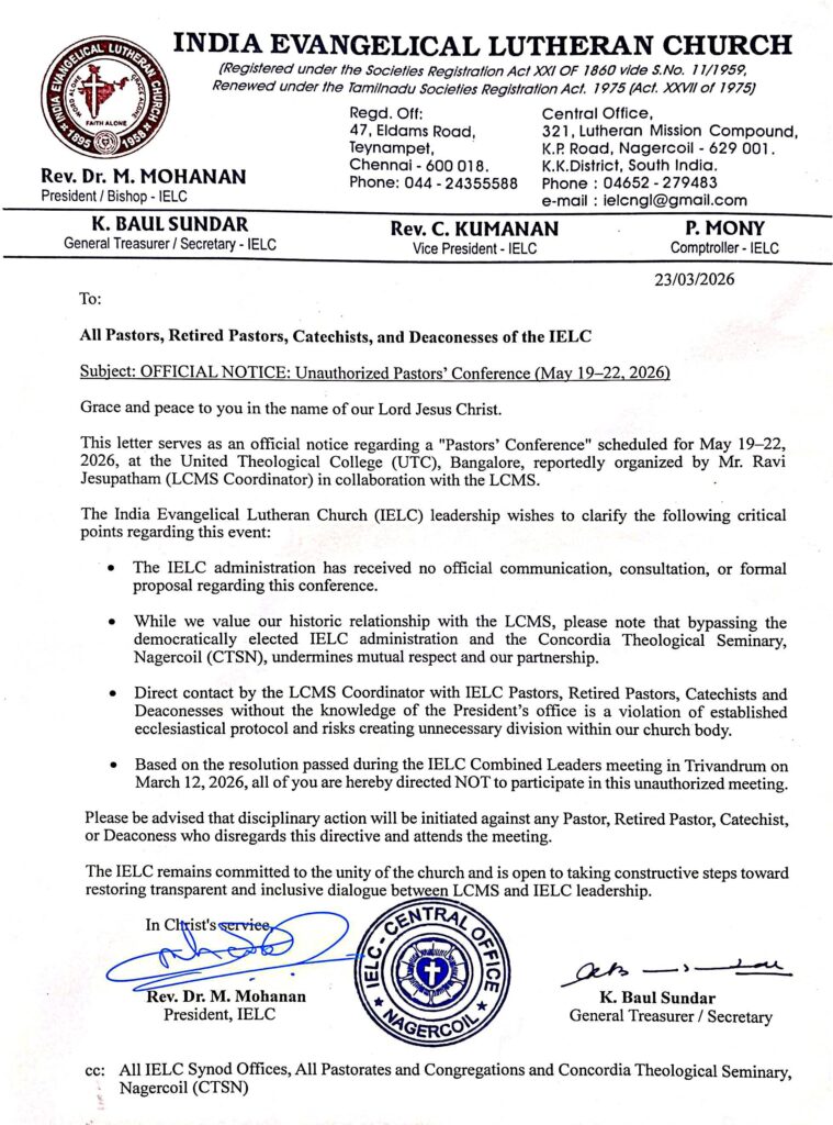 OFFICIAL NOTICE: UNAUTHORIZED PASTORS’ CONFERENCE (MAY 19-22, 2026) – REG.
