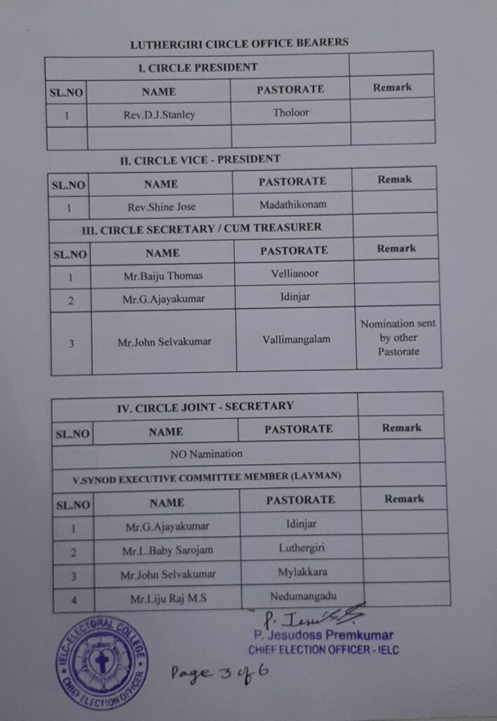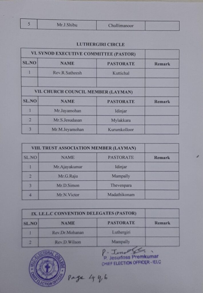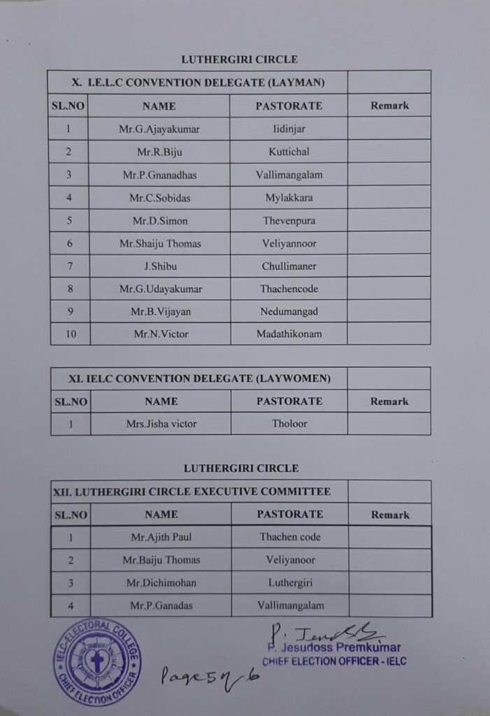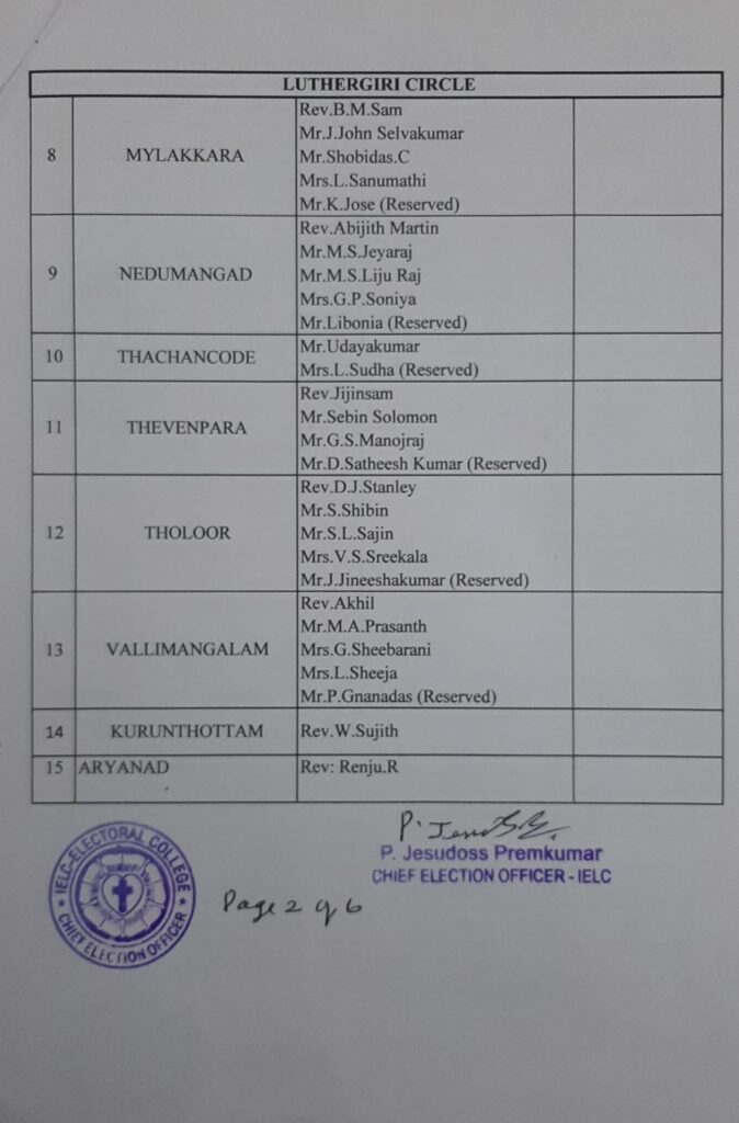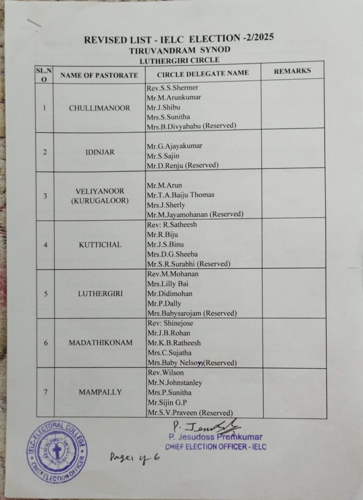 Revised List of candidates / delegates in Luthergiri Circle – Trivandrum Synod