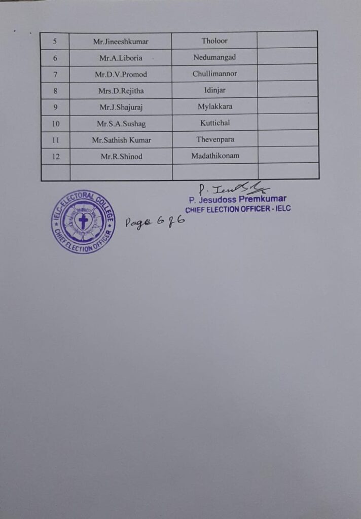 • IELC ELECTION – 2/2025, TRIVANDRUM SYNOD – BALARAMAPURAM CIRCLE – FINAL VOTERS LIST - 15/10/2025