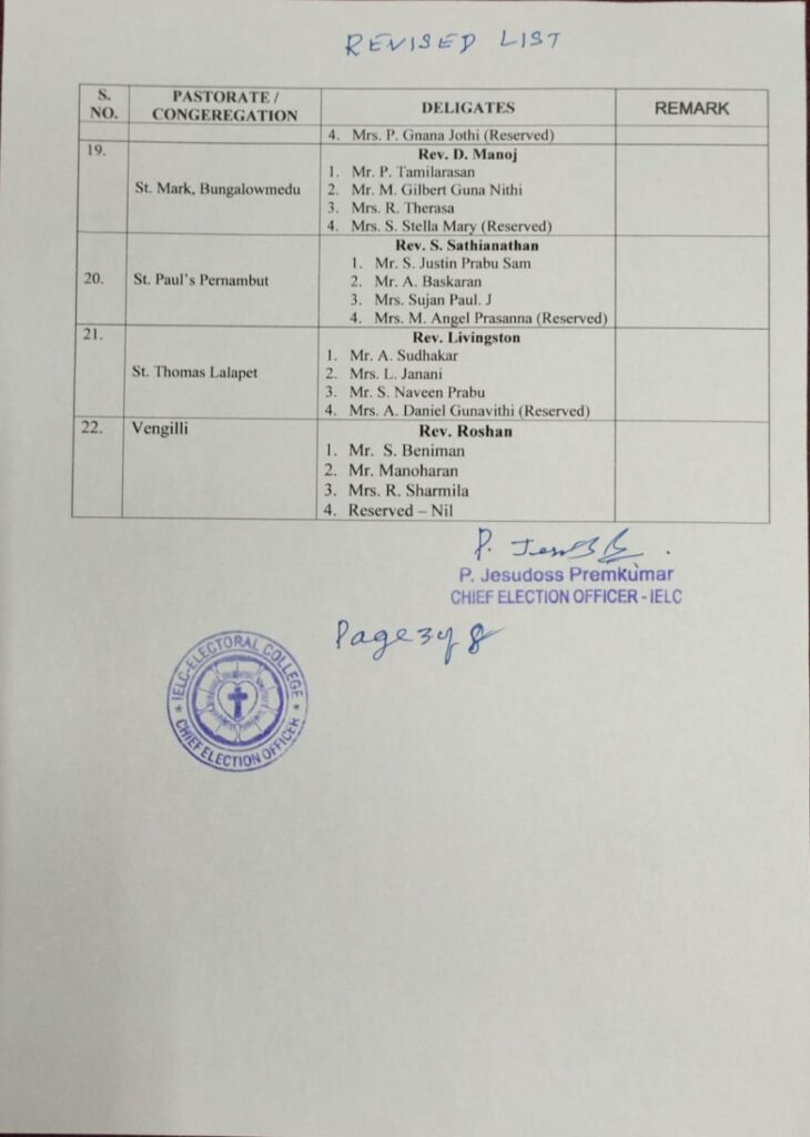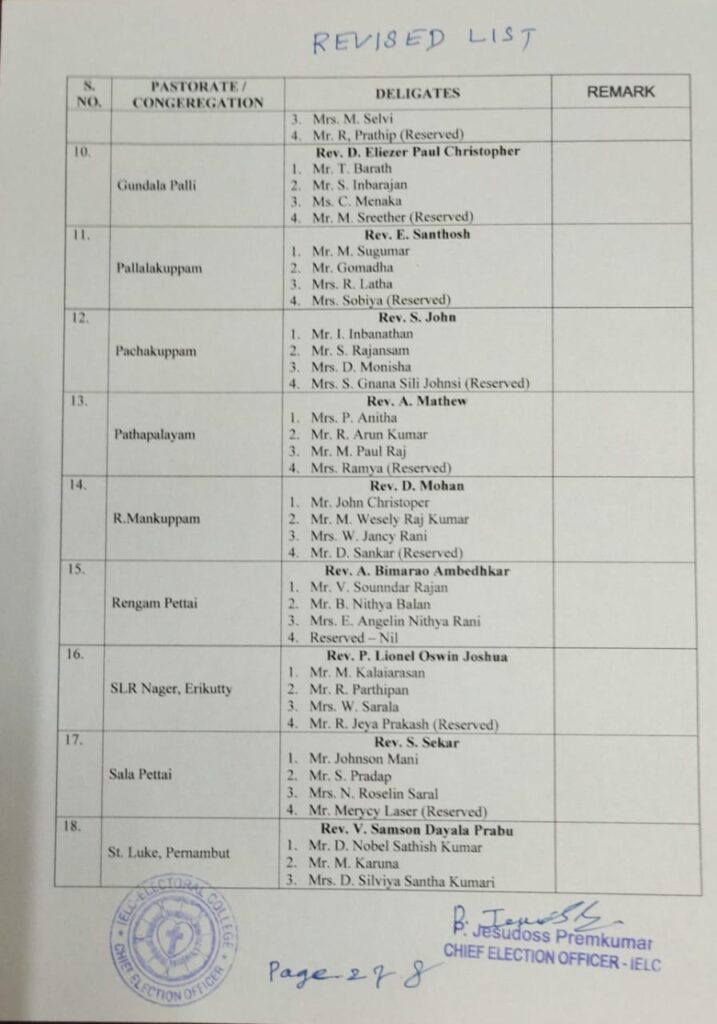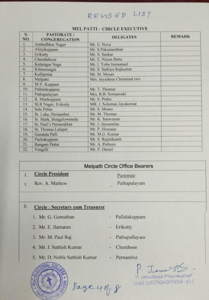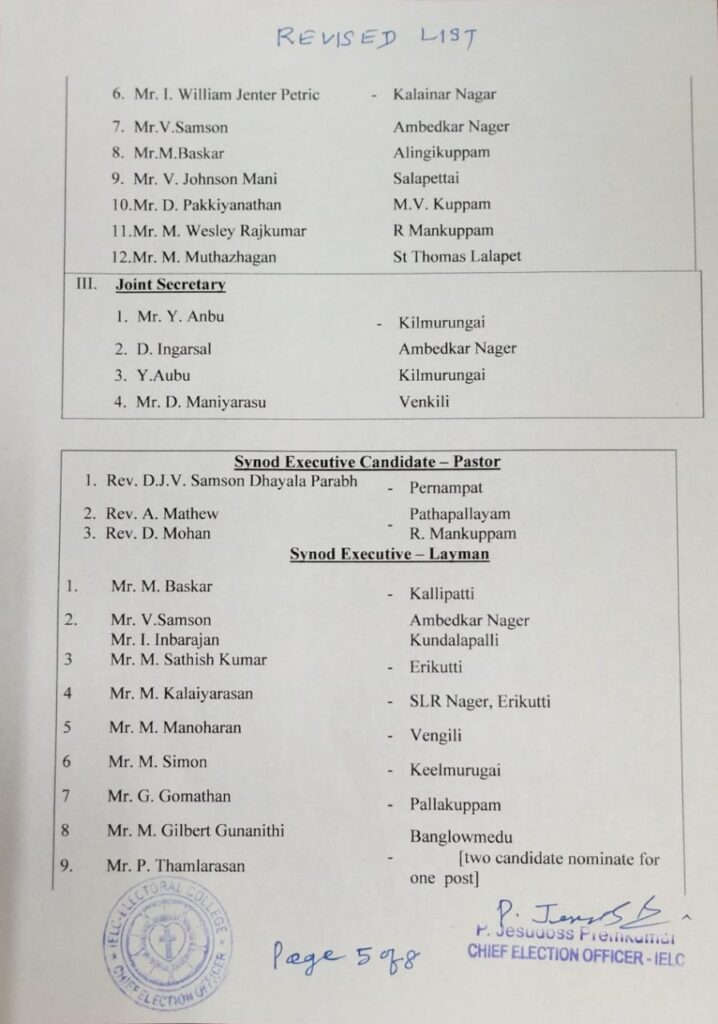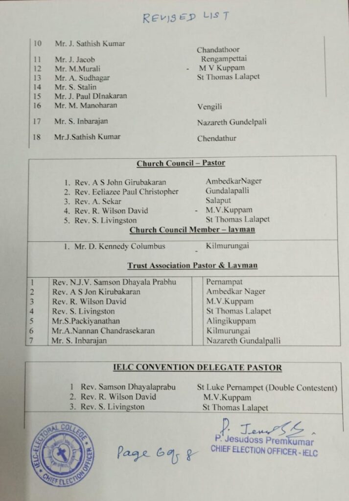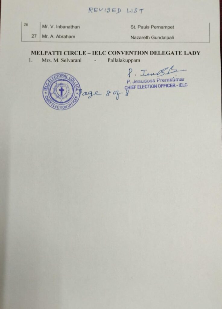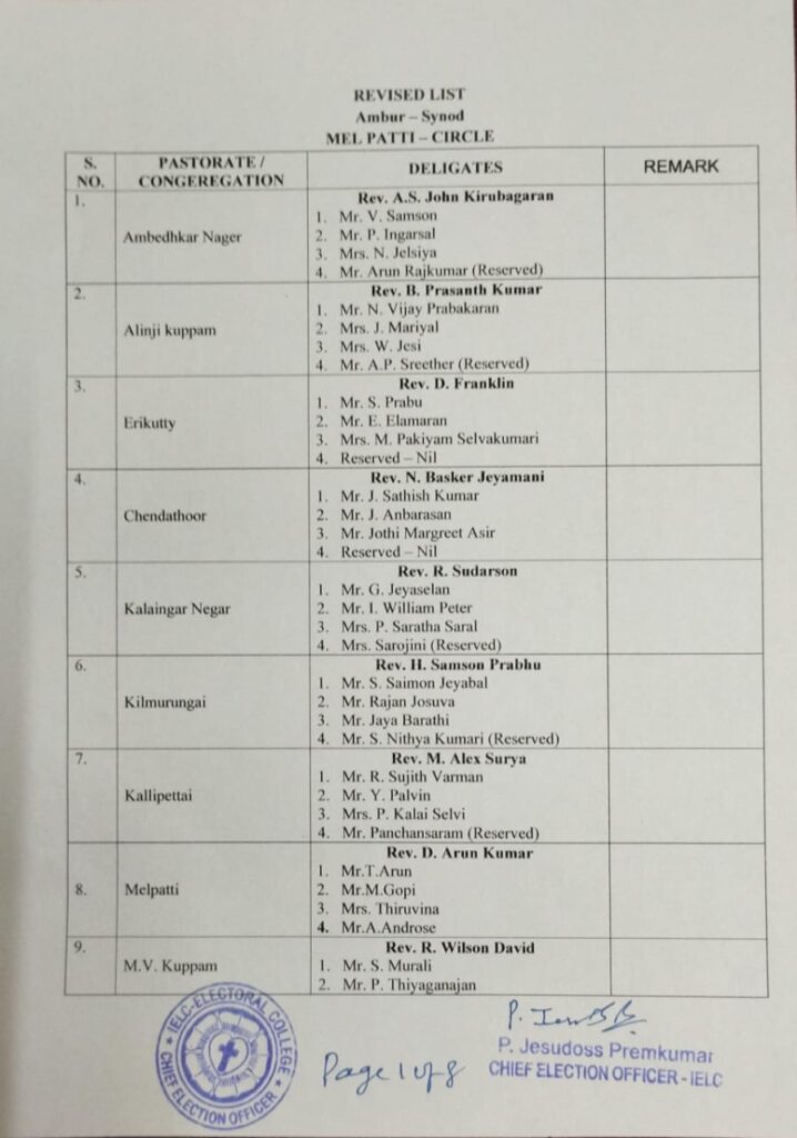 Revised List of candidates / delegates in Melpatti Circle – Ambur Synod
