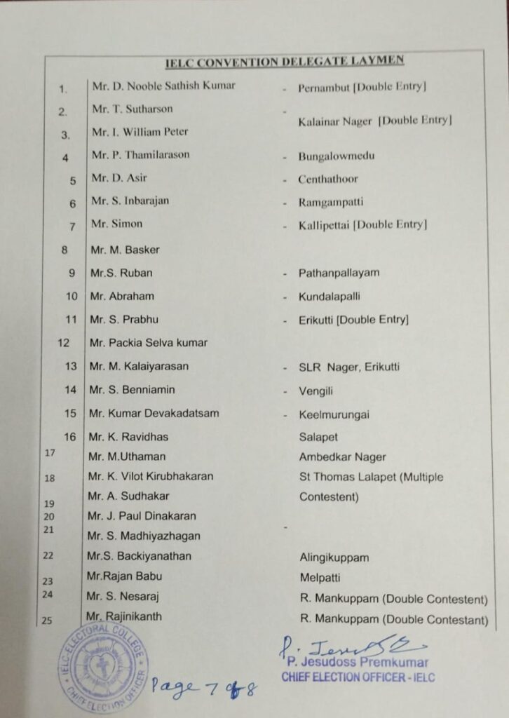 Revised List of candidates / delegates in Vaniyambadi Circle – Ambur Synod