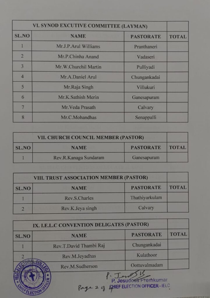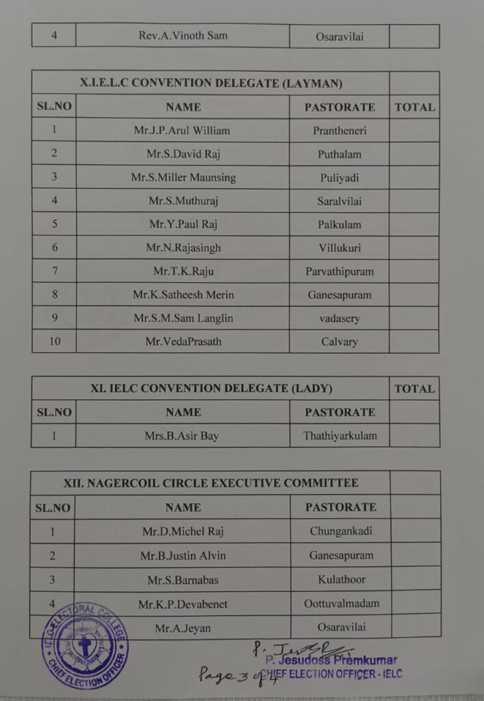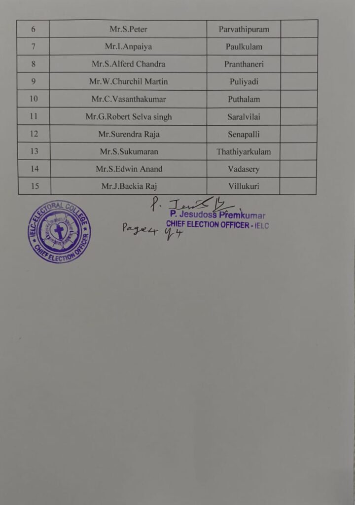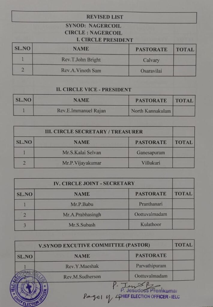 Revised List of candidates / delegates in Thovalai Circle – Nagercoil Synod