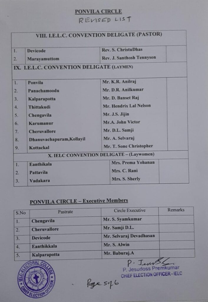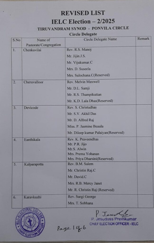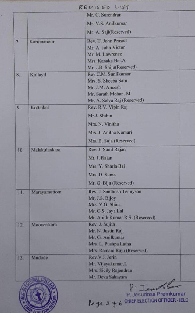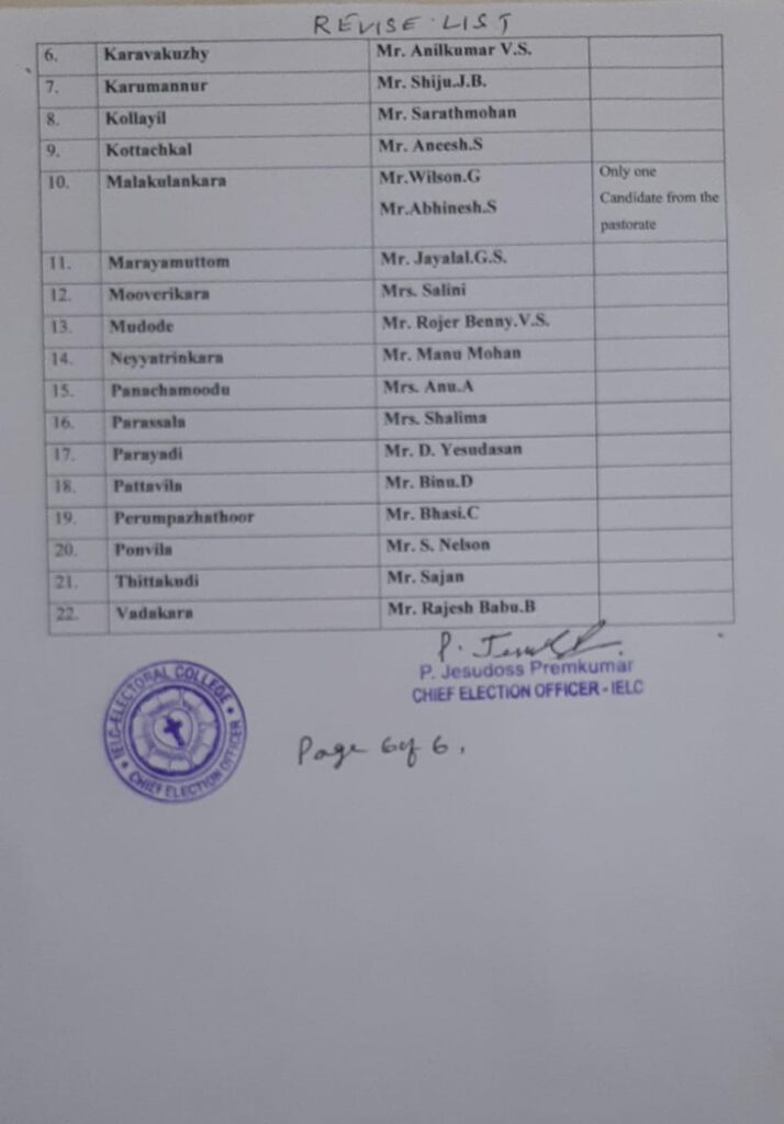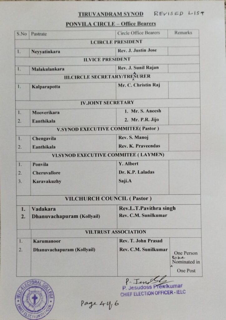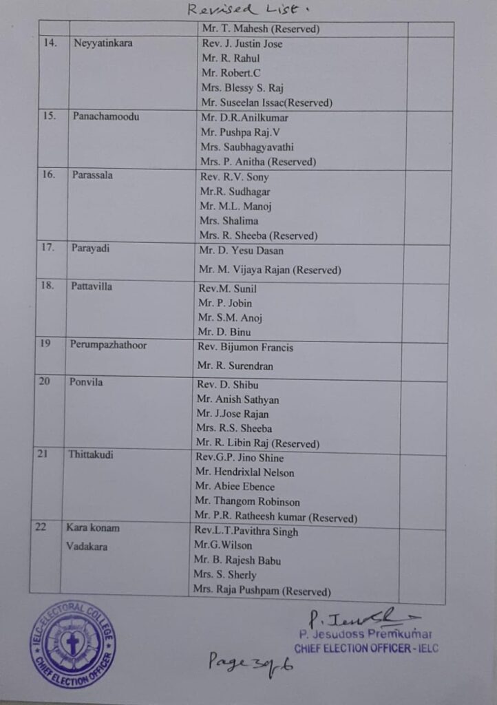 Revised List of candidates / delegates in Ponvila Circle – Trivandrum Synod