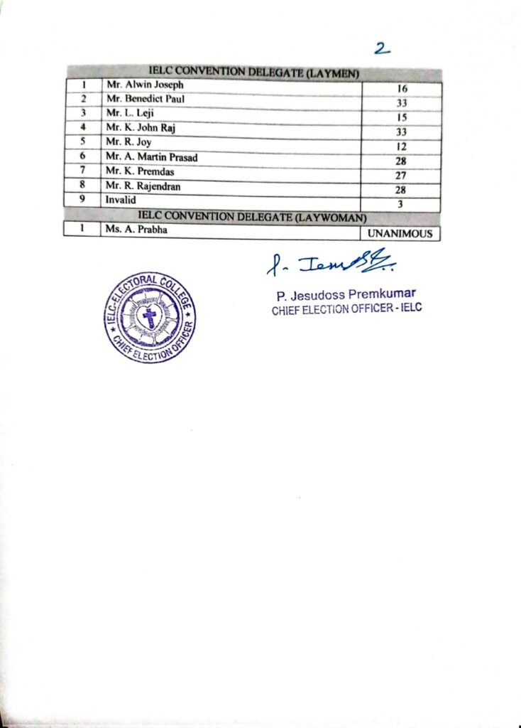 Trivandrum Synod Circle Election Results – Luthergiri Circle.