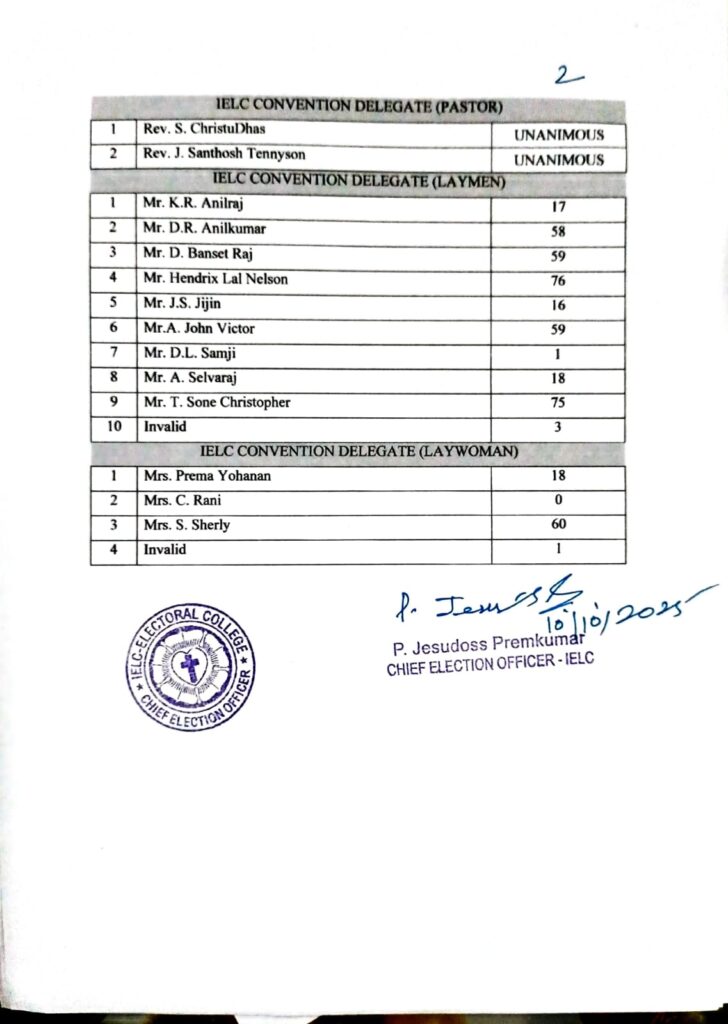 Trivandrum Synod Circle Election Results – Nilamel Circle.